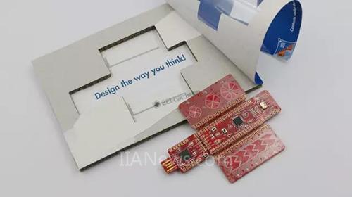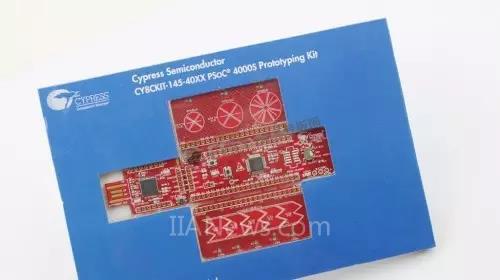 拆解外包裝后,可以看到一句很鼓舞人心的話“Design the way you think”,千萬不要認(rèn)為這是簡簡單單的一句廣告語,愛板網(wǎng)工程師認(rèn)為這確實(shí)很貼合Cypress的產(chǎn)品特性,PSoC,即可編程片上系統(tǒng),你完全可以根據(jù)自己的設(shè)計(jì)最優(yōu)的定義相應(yīng)的管腳信號(hào),創(chuàng)造出最合理的設(shè)計(jì)。