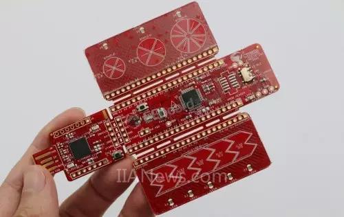 PSoC 4 CapSense原開發(fā)板PCB設(shè)計(jì)有些獨(dú)特,外形有種大鵬展翅的趕腳,很夸張,板子采用類似USB dongle接口類型,直接插入電腦的USB接口就可以使用。