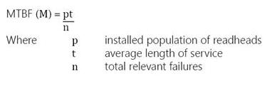 根據(jù)我們的記錄(年度生產(chǎn)數(shù)字和故障數(shù)據(jù)),讀數(shù)頭MTBF的連續(xù)使用時(shí)間為2,013年。