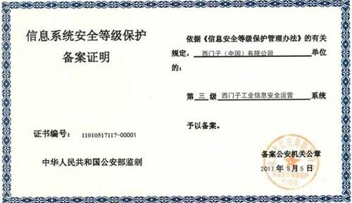位于蘇州的西門子工業(yè)信息安全運營中心已經(jīng)取得了國家信息安全等級保護三級證書,西門子是中國第一個獲得這項資質(zhì)的外資企業(yè)。