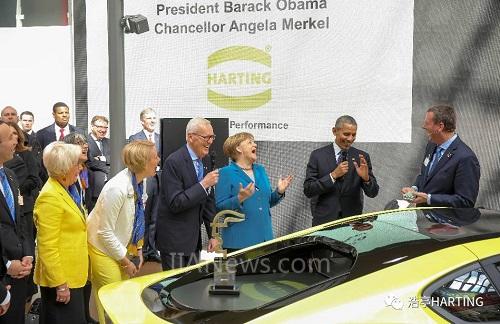 2016年的漢諾威博覽會(huì)合作國(guó)家為美國(guó),浩亭無(wú)比榮幸地迎來(lái)了奧巴馬總統(tǒng)和默克爾總理,Harting家族全體成員為他們?nèi)轿徽故玖藰s獲赫爾墨斯創(chuàng)新獎(jiǎng)(HERMES AWARD)的 MICA 以及配有 MICA 的Rinspeed"Etos"概念車,用于獨(dú)立排放和狀態(tài)監(jiān)控。