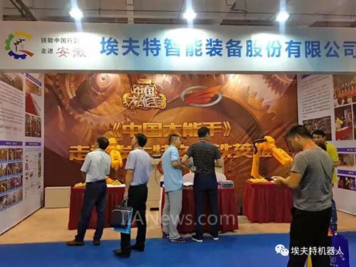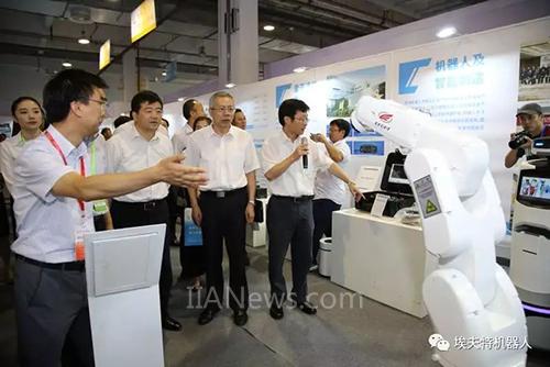 開幕式結(jié)束后,在蕪湖市委書記潘朝暉的陪同下,人力資源和社會(huì)保障部副部長(zhǎng)湯濤等領(lǐng)導(dǎo)參觀了技能中國行展館的重要展示區(qū),埃夫特公司董事長(zhǎng)兼總經(jīng)理許禮進(jìn)向相關(guān)領(lǐng)導(dǎo)介紹了埃夫特的新款小型機(jī)器人ER7-C10。