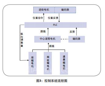 每個(gè)印刷色組的進(jìn)給電機(jī)通過編碼器的反饋,能夠準(zhǔn)確進(jìn)給到工藝需要的位置,保證印刷所需的遞墨量和壓印力,以達(dá)到完美的印刷效果。其控制流程圖如圖3所示。