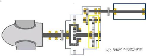 本例中的齒輪箱是風(fēng)力發(fā)電機(jī)組的齒輪箱,該齒輪箱為1級(jí)行星+2級(jí)平行布置。問(wèn)題出現(xiàn)在中間級(jí)嚙合的齒輪,如黃色框中所示: