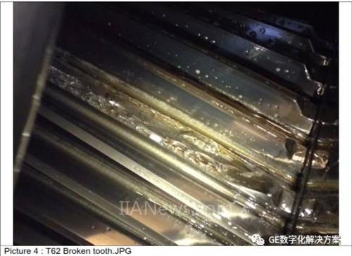 從6月19日至21日用戶(hù)對(duì)齒輪箱通過(guò)內(nèi)窺鏡檢查,發(fā)現(xiàn)中間軸小齒輪齒斷了,有些齒還有裂紋。如下所示,用戶(hù)附上了檢查結(jié)果及齒輪損壞照片。