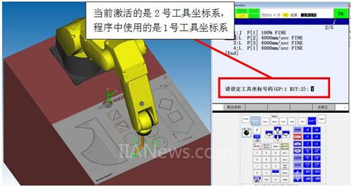若當(dāng)前激活的工具及用戶(hù)坐標(biāo)系號(hào)和程序中記錄的不一致,則在更新數(shù)據(jù)時(shí)有以下提示: