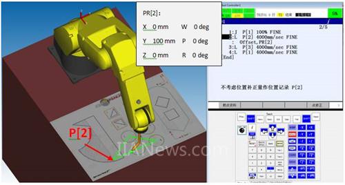 選擇【不是】代表當(dāng)前位置減去偏移量PR[2]后為P[2]位置