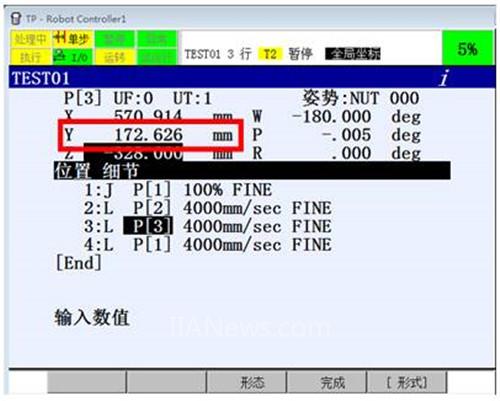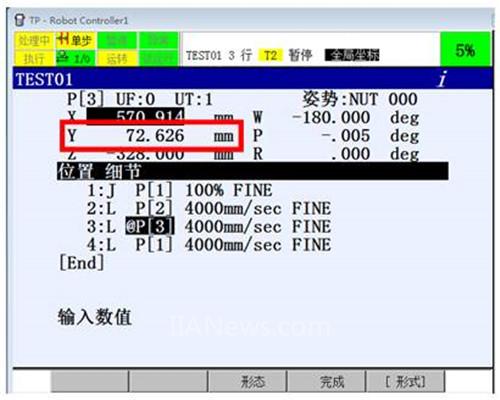 選擇【不是】代表當(dāng)前機(jī)器人位置記錄至P[2]