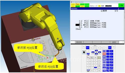 2)示教機(jī)器人到新位置;