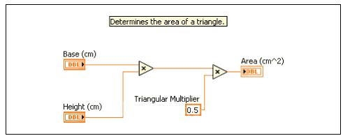 圖10. 計(jì)算三角形面積算法的程序框圖(接線端不顯示為圖標(biāo))