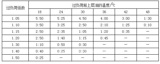 (3)“嗡嗡”聲大而沉重,但無(wú)雜音。一般是過(guò)負(fù)荷引起的??赏ㄟ^(guò)調(diào)整負(fù)荷加以解決。變壓器在不同程度的負(fù)荷下允許在一定時(shí)間內(nèi)存在。風(fēng)冷或自然冷卻油浸變壓器的過(guò)負(fù)荷允許時(shí)間如表1。