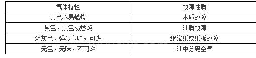 表2 瓦斯繼電器內(nèi)氣體說(shuō)明的故障性質(zhì)