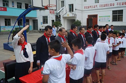 日立一行將校服贈與希望小學(xué)師生