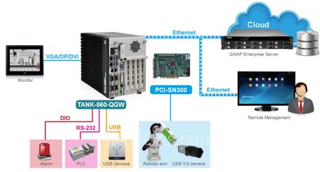 TANK-860-QGW 如同機(jī)器人的大腦,其多個(gè) I / O 輸出就像人類的四肢和感官,可連接各種自動(dòng)化控制、機(jī)器視覺(jué)和資料擷取設(shè)備。利用 Virtualization Station 在 VM 上運(yùn)行應(yīng)用程序,可直接控制 PCI-SN300 運(yùn)動(dòng)控制卡,從而允許 USB 3.0 攝像機(jī)捕捉圖像,作為機(jī)器人的眼睛進(jìn)行定位。機(jī)器人可以彼此交換數(shù)據(jù)并使用算法來(lái)優(yōu)化應(yīng)用程序,再傳回 TANK-860-QGW 以將統(tǒng)一命令發(fā)送到所有設(shè)備。 此外,Hybrid Backup Sync 還可將資料備份到其他存儲(chǔ)設(shè)備,降低資料丟失的風(fēng)險(xiǎn),保存珍貴的數(shù)據(jù)。