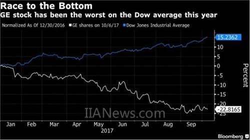 GE今年股票直線下跌,已經(jīng)下跌了22%,幾乎是道瓊斯工業(yè)指數(shù)表現(xiàn)最差的公司,也是自2008年以來歷史最差的一年。