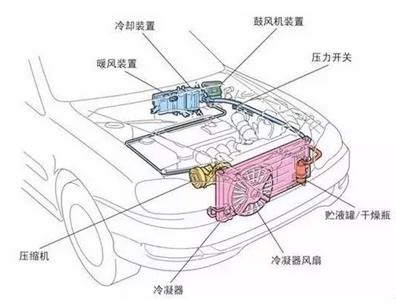 通常情況,空調(diào)系統(tǒng)的一些裝置是與汽車的前端模塊裝配在一起的,例如:冷凝器、冷凝風(fēng)扇。