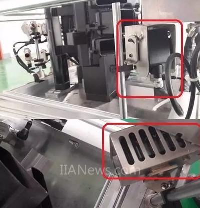 裝配好的零件放在檢具上,Q4X傳感器檢測零件上的小部件有無,以及零件的位置,有些零件位置通過雙模功能進(jìn)行檢測。其他品牌傳感器沒有邦納Q4X的雙模功能,客戶最終選擇了邦納傳感器。