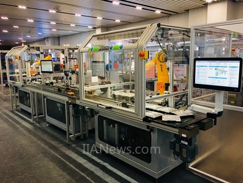 該示范線針對(duì)廣東省制造業(yè)的特點(diǎn),結(jié)合最新的工業(yè)4.0理念,反映了工業(yè)4.0中創(chuàng)新的生產(chǎn)過程和制造模式。示范線由訂單體驗(yàn)中心、物流倉(cāng)儲(chǔ)、機(jī)器裝配、個(gè)性定制、3D打印、檢測(cè)總裝及包裝貼標(biāo)等單元組成,運(yùn)用了工業(yè)機(jī)器人、3D打印、RFID系統(tǒng)、工業(yè)模擬仿真、激光制導(dǎo)AGV、生產(chǎn)制造執(zhí)行管理系統(tǒng)MES等先進(jìn)的生產(chǎn)要素,實(shí)現(xiàn)了智能3C產(chǎn)品的生產(chǎn)、裝配、定制、檢測(cè)、運(yùn)輸及倉(cāng)儲(chǔ),充分體現(xiàn)了融合IT的自動(dòng)化技術(shù)、工業(yè)互聯(lián)網(wǎng)的應(yīng)用、多外形產(chǎn)品的混線生產(chǎn)、客制化小批量產(chǎn)品的制造、能耗跟蹤管理及生產(chǎn)過程的數(shù)字化與信息化。