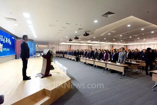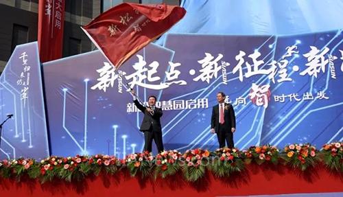 上午11時18分,在熱烈的掌聲中,新松智慧園啟用暨向智時代出發(fā)啟動儀式正式開始。首先,總裁曲道奎向各分子公司、BG總裁進行“向智時代出發(fā)”的授旗儀式,在震天的禮炮聲中、在五彩斑斕的彩帶中,在曲總的帶領下,新松人發(fā)出“新起點,新征程,新跨越,向智時代出發(fā)”的撼動山河的呼喊!至此,標志著新松智慧園正式投入使用。