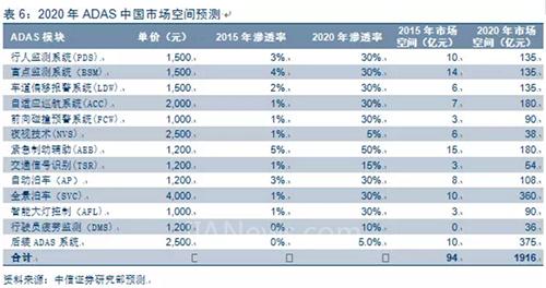 圖2. 中信證券研究部預(yù)測2020年中國ADAS市場規(guī)模有望達(dá)到2000億元