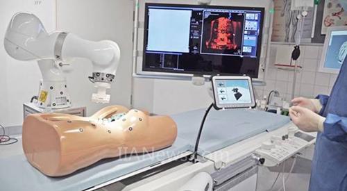 在這個(gè)項(xiàng)目中,通過(guò)結(jié)合磁共振成像和超聲波診斷技術(shù)來(lái)實(shí)現(xiàn)精確的目標(biāo)導(dǎo)引。KUKA 輕型機(jī)器人 LBR Med 引導(dǎo)超聲波探頭,使活檢穿刺針對(duì)準(zhǔn)病變位置,以便醫(yī)生能夠非常精準(zhǔn)地扎入穿刺針,使操作過(guò)程變得更簡(jiǎn)單、更安全。