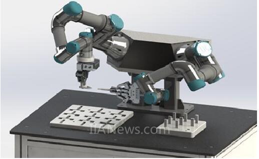 工作流程描述: UR雙臂,其中一個(gè)手臂安裝服務(wù)器CPU,同時(shí)另外一個(gè)手臂安裝風(fēng)扇。完成后,雙臂協(xié)同裝配內(nèi)存條。UR雙臂機(jī)器人的兩個(gè)手臂,既可以單獨(dú)運(yùn)行,也可以協(xié)同工作。
