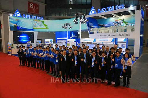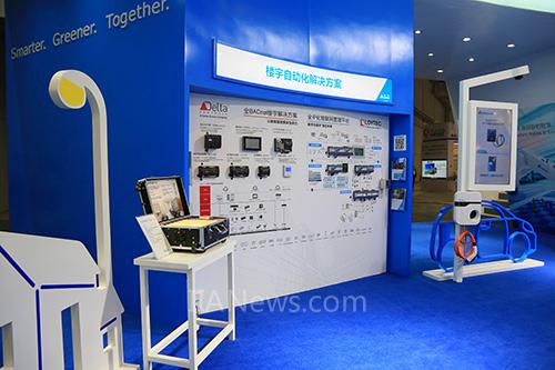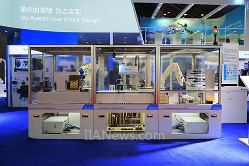 2017中國國際工業(yè)博覽會,全球企業(yè)聚焦智能制造,臺達(dá)以軟實(shí)力“心”智造為主題,展出“智能制造示范線”,由三組機(jī)器人組成的工作站,串聯(lián)周邊設(shè)備、制造執(zhí)行系統(tǒng)(MES)下單系統(tǒng)、生產(chǎn)設(shè)備管理平臺(DIAMMP)等,實(shí)現(xiàn)少量多樣,混線生產(chǎn),為嘉賓私人訂制刻有個(gè)人姓名的禮品,全程不到兩分鐘。臺達(dá)自動化業(yè)務(wù)近期增長強(qiáng)勁,通過策略并購實(shí)現(xiàn)軟硬件結(jié)合,可為客戶提供工業(yè)自動化及樓宇自動化整體解決方案。