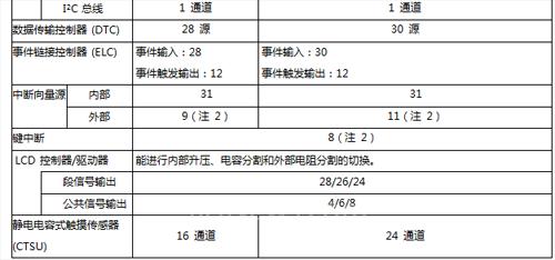 (注 1)參見 1.1 特性表中的 ROM 和 RAM 容量。