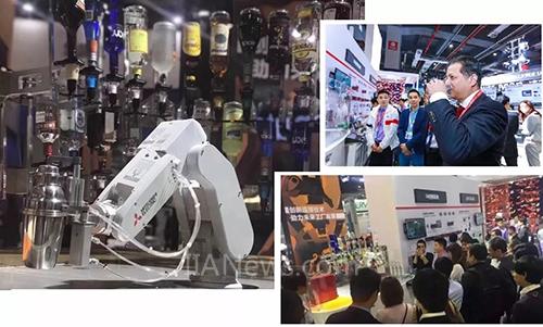 再說(shuō)到另一個(gè)同樣有趣的展機(jī),“調(diào)酒機(jī)器人”。靈活的動(dòng)作,精準(zhǔn)的取量,整個(gè)調(diào)制過(guò)程行云流水。賞心悅目的同時(shí),有人不禁想問(wèn):這,能喝的嗎?當(dāng)然能!