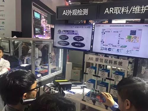 中間那位帶著VR眼鏡的小伙伴,是不是特出挑?他在干嘛呢?他在觀看個(gè)性化定制示范產(chǎn)線,能看到離展臺(tái)老遠(yuǎn)的地方那條導(dǎo)入三菱電機(jī)e-F@ctory解決方案的示范產(chǎn)線。從下達(dá)生產(chǎn)指令,到最后拿到定制化成品,e-F@ctory貫穿其中,全面提升與改善整條生產(chǎn)線。