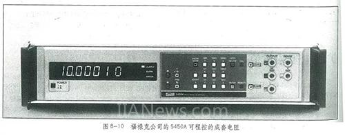 電阻工作標準的各種阻值通過5700A內部的矩陣開關加到DMM的輸入端。圖8—10所示的福祿克公司的5450A是一種專用的電阻校準器,能夠給出一套比5700A更加準確的、已知的、可以開關切換的電阻器。