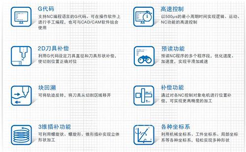 對G代碼的支持,可減輕客戶進行復(fù)雜形狀加工程序設(shè)計、編程作業(yè)的工作強度 。