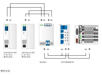 一般而言,電壓冗余通常通過二極管模塊設(shè)計(jì)為熱冗余,從而以經(jīng)濟(jì)實(shí)惠的方式調(diào)節(jié)兩個(gè)獨(dú)立電壓源。如果其中一個(gè)電源發(fā)生故障,可通過即時(shí)切換使用另一電源。