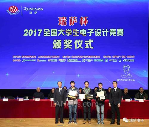 2017年12月2日,“2017瑞薩杯全國大學(xué)生電子設(shè)計競賽”頒獎儀式在北京航天航空大學(xué)晨興音樂廳成功舉辦。來自全國151所大學(xué)的268支一等獎和部分二等獎獲獎隊伍代表,教育部、工信部相關(guān)領(lǐng)導(dǎo)、兩院院士代表、競賽組委會/專家組領(lǐng)導(dǎo)、瑞薩電子及其代理商代表以及相關(guān)媒體等共同出席了頒獎儀式。