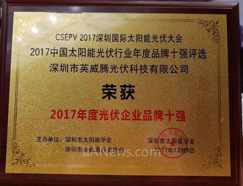 英威騰榮獲2017年度光伏企業(yè)十強(qiáng)品牌