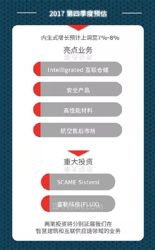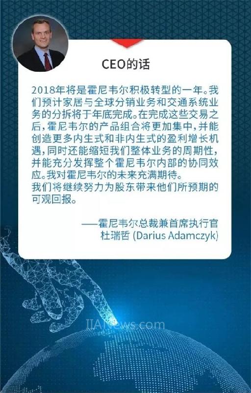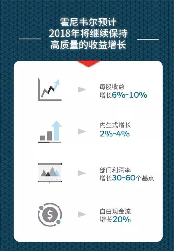 霍尼韋爾預計2018年將繼續(xù)保持高質量的收益增長,每股收益增長將達到6%-10%,不包含預計的剝離業(yè)務以及8億到12億美元的摩擦稅收成本,也不包括按市值計算的養(yǎng)老金調整和美國稅收立法可能帶來的進一步影響。