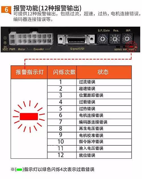 ● 各種報警輸出:過電流,超速,過熱,電機連接錯誤,編碼器連接錯誤等共12種報警輸出