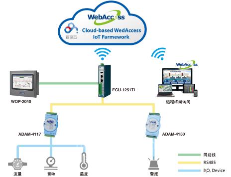 產(chǎn)品沿襲一貫優(yōu)秀的研華的采集方案,使用ECU-1152來進(jìn)行簡捷方便的數(shù)據(jù)傳輸,將其傳送到云端,在云端進(jìn)行數(shù)據(jù)的統(tǒng)一管理和分析,同時使用APP來進(jìn)行數(shù)據(jù)的讀取和客戶端展示,完美的實現(xiàn)設(shè)備數(shù)據(jù)的物聯(lián)網(wǎng)解決方案。