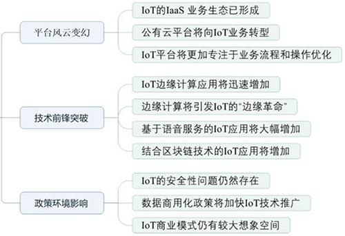 技術(shù)前鋒突破:IoT邊緣計算應(yīng)用將迅速增加,邊緣計算將引發(fā)IoT的“邊緣革命”,基于語音服務(wù)和結(jié)合區(qū)塊鏈技術(shù)的IoT應(yīng)用將大幅增加;