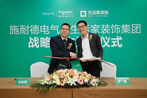 生活家裝飾集團(tuán)中心總經(jīng)理白志明和施耐德電氣中國(guó)區(qū)高級(jí)副總裁、零售業(yè)務(wù)部負(fù)責(zé)人宋炯作為雙方代表簽署戰(zhàn)略合作協(xié)議