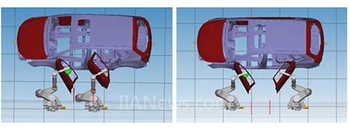 P-20iB機器人獨特的2,3軸雙向折彎設(shè)計也為內(nèi)噴站的柔性化共線提供了完美的解決方案。既降低了客戶的投資成本,又為客戶新車型開發(fā)提供了有廣闊的生產(chǎn)平臺。