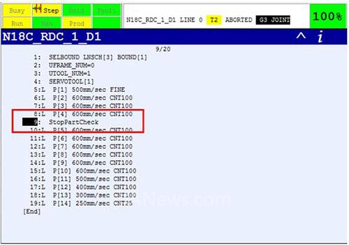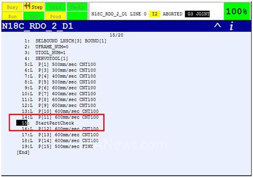 在運行機器人的過程中,只要在指令中插入StartPartCheck子程序,機器人就可以開始識別工件,并予以實時監(jiān)控。