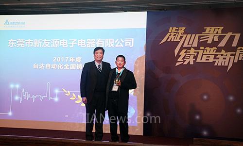臺達集團-中達電通董事總經(jīng)理游文人先生為“2017年度臺達自動化全國銷售冠軍”的渠道伙伴頒獎