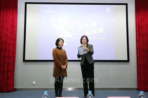 艾默生副總裁、中國區(qū)總經理李潔和上海理工大學光電學院黨委副書記曹英為優(yōu)秀指導教師頒獎