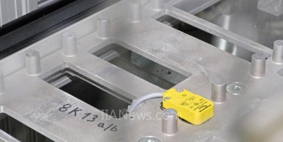 “我們考察了圖爾克之外的另一家RFID供應(yīng)商。然而,該供應(yīng)商只有圓柱形外殼的RFID讀寫頭?!盪llmann解釋選擇圖爾克的原因之一。EuWe使用來自圖爾克的一款非常緊湊的RFID讀寫頭:扁平矩形TN-Q14-0.15-RS4.47T讀寫頭,可優(yōu)化安裝在生產(chǎn)島的固定件中間。由于該位置已經(jīng)有一個金屬圓柱,因此不能再使用圓柱,否則工件載具另一個位置的定位更加困難。圓形TW-R50-B128標簽被安裝在工件載具的中間。