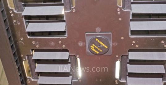 工件載具的仰視圖顯示了中心安裝的標簽和四個帶風門片的后排氣孔。