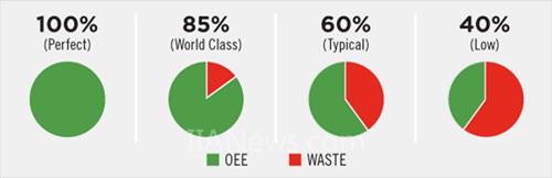測量OEE是設(shè)備運行持續(xù)改善的起點,沒有測量就沒有改善,世界級企業(yè)的成功運營依賴于對設(shè)備和生產(chǎn)流程、績效的一貫地,準確的測量。世界級企業(yè)的全局設(shè)備效率OEE為85%或更好,制造業(yè)平均水平是60%。但大多數(shù)企業(yè)發(fā)現(xiàn)他們的設(shè)備OEE運行在13%-40%之間。