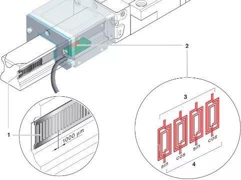 (1)增量刻度 (2)感應(yīng)平面線圈帶(3)勵(lì)磁線圈(4)接收線圈