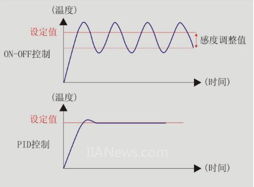 PID調節(jié)控制:PID調節(jié)控制是通過一個調節(jié)函數(shù)來調節(jié)溫度。在理想的工藝控制范圍,ON-OFF控制是無法達到穩(wěn)定的,而PID控制會比ON-OFF更加的精確。