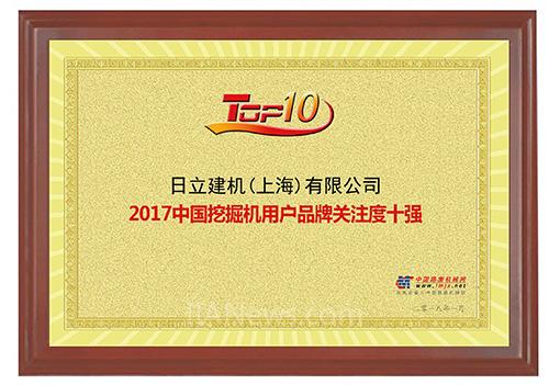 日立建機(jī)上榜“2017中國(guó)挖掘機(jī)用戶品牌關(guān)注度十強(qiáng)”
